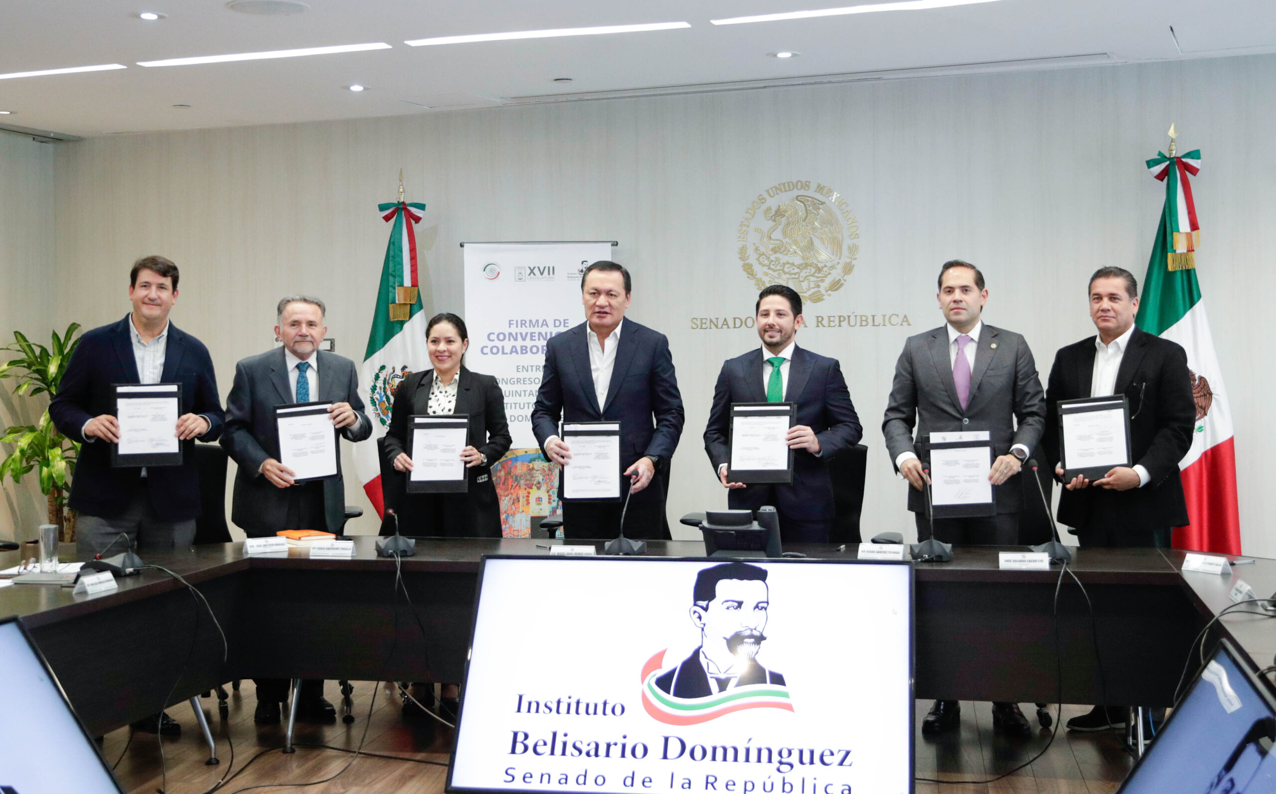 Firman convenio de colaboración, en materia legislativa, IBD y Congreso de Quintana Roo