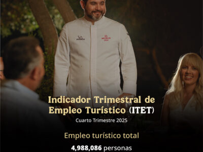 Concluye 2025 con casi 5 millones de personas empleadas en el sector turístico