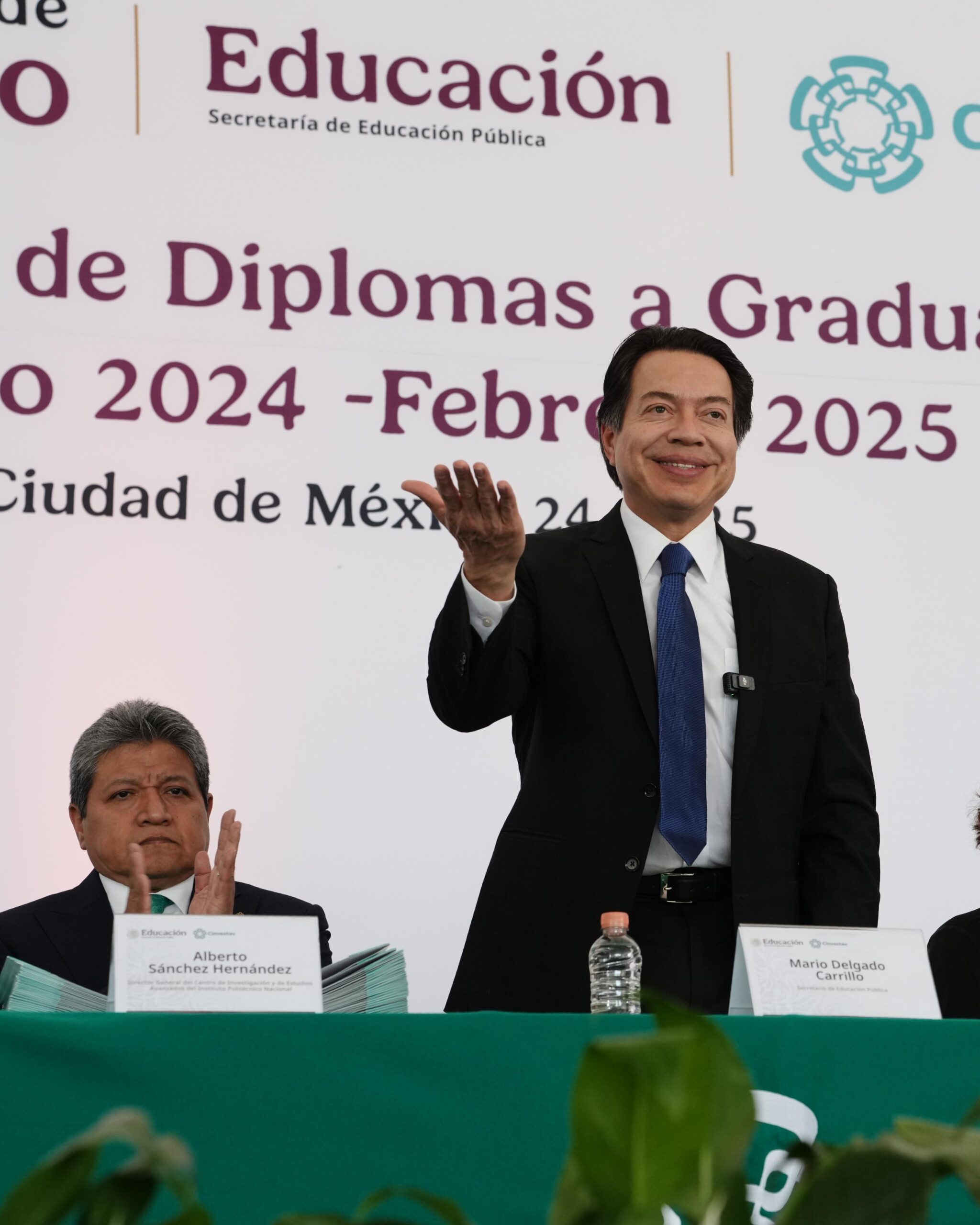 El secretario de Educación Pública, Mario Delgado Carrillo, y la secretaria de Ciencia, Humanidades, Tecnología e Innovación (Secihti), Rosaura Ruiz Gutiérrez, encabezaron la Ceremonia de Entrega de Diplomas a graduadas y graduados en Ciencias 2024-2025 del Centro de Investigación y de Estudios Avanzados (Cinvestav) del Instituto Politécnico Nacional (IPN).