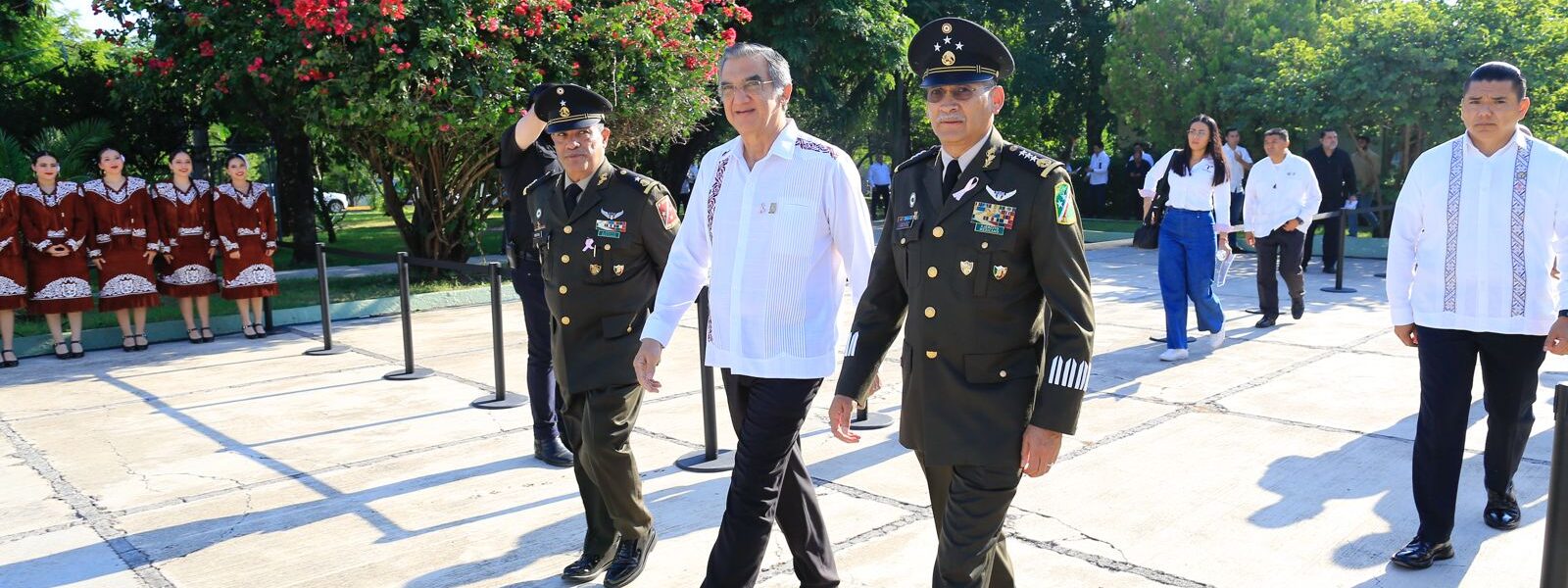 El gobernador Américo Villarreal Anaya asistió como invitado de honor a la toma de posesión al cargo y protesta de bandera del general brigadier de Estado Mayor, Newton Manuel Chávez Baños, como comandante interino de la 48 Zona Militar.