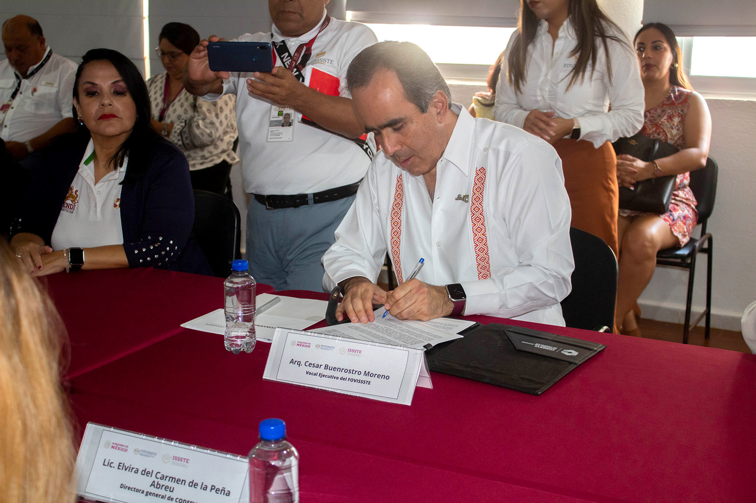 “El presente convenio considera tres áreas de colaboración que impulsan una serie de acciones de importantes beneficios para las personas trabajadoras del Estado: la revisión del estatus de la derechohabiencia local, el seguimiento a la oferta de vivienda y la instalación conjunta de tres oficinas del Fovissste, Departamentos de Vivienda”, detalló Buenrostro Moreno.