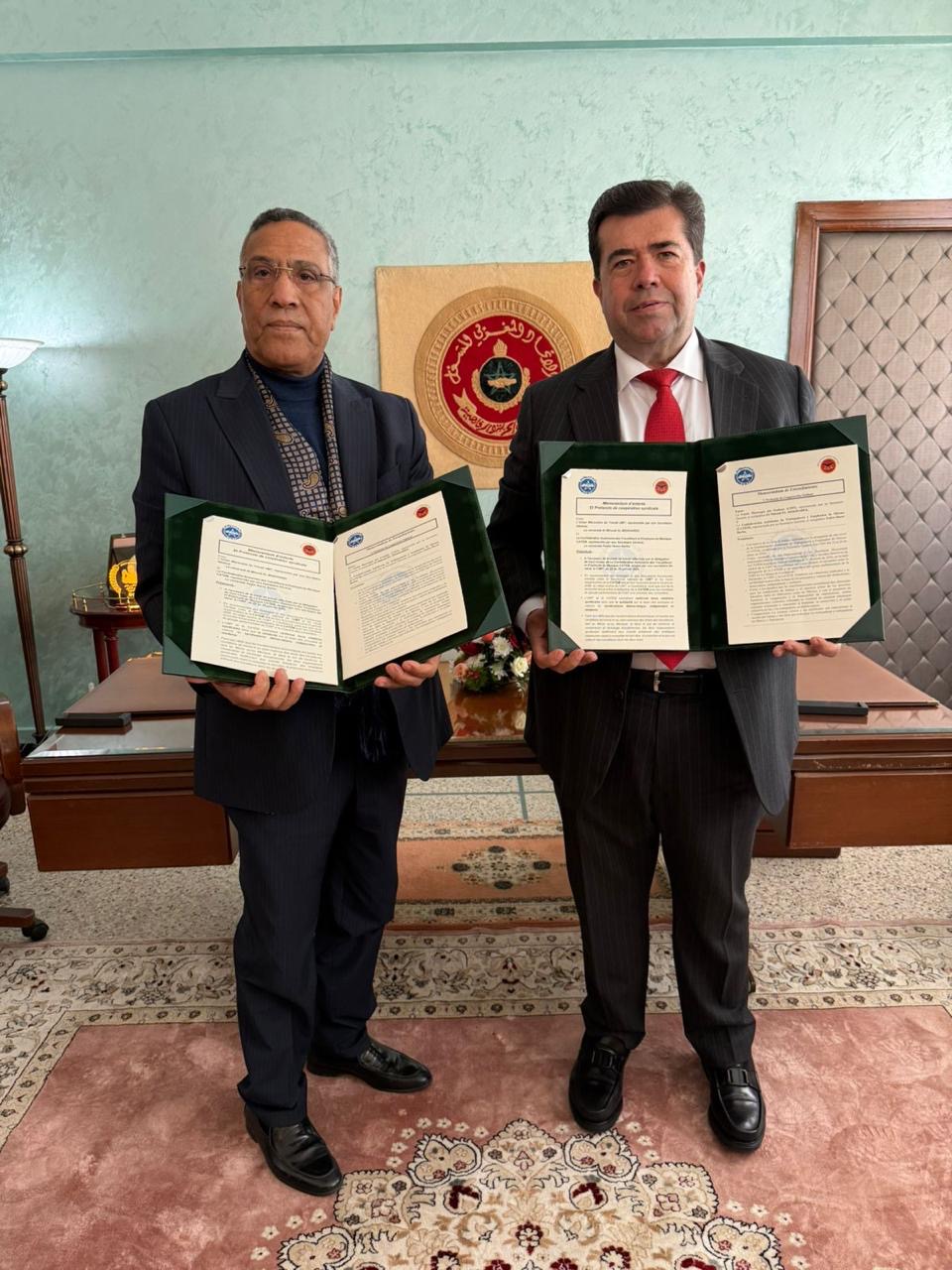 El acuerdo fue suscrito por Pedro Haces, Secretario General de CATEM, y Miloudi El Moukharrek, Secretario Nacional de la UMT, como resultado de los encuentros sostenidos entre ambas centrales sindicales durante la visita institucional realizada en Marruecos.