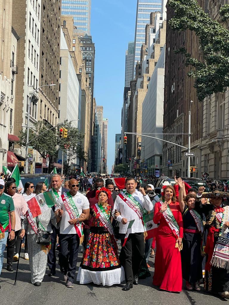 En el Desfile de Independencia en aquella ciudad estadounidense con la asistencia de más de 70 mil asistentes, participaron además del senador Armenta y el alcalde Eric Adams;