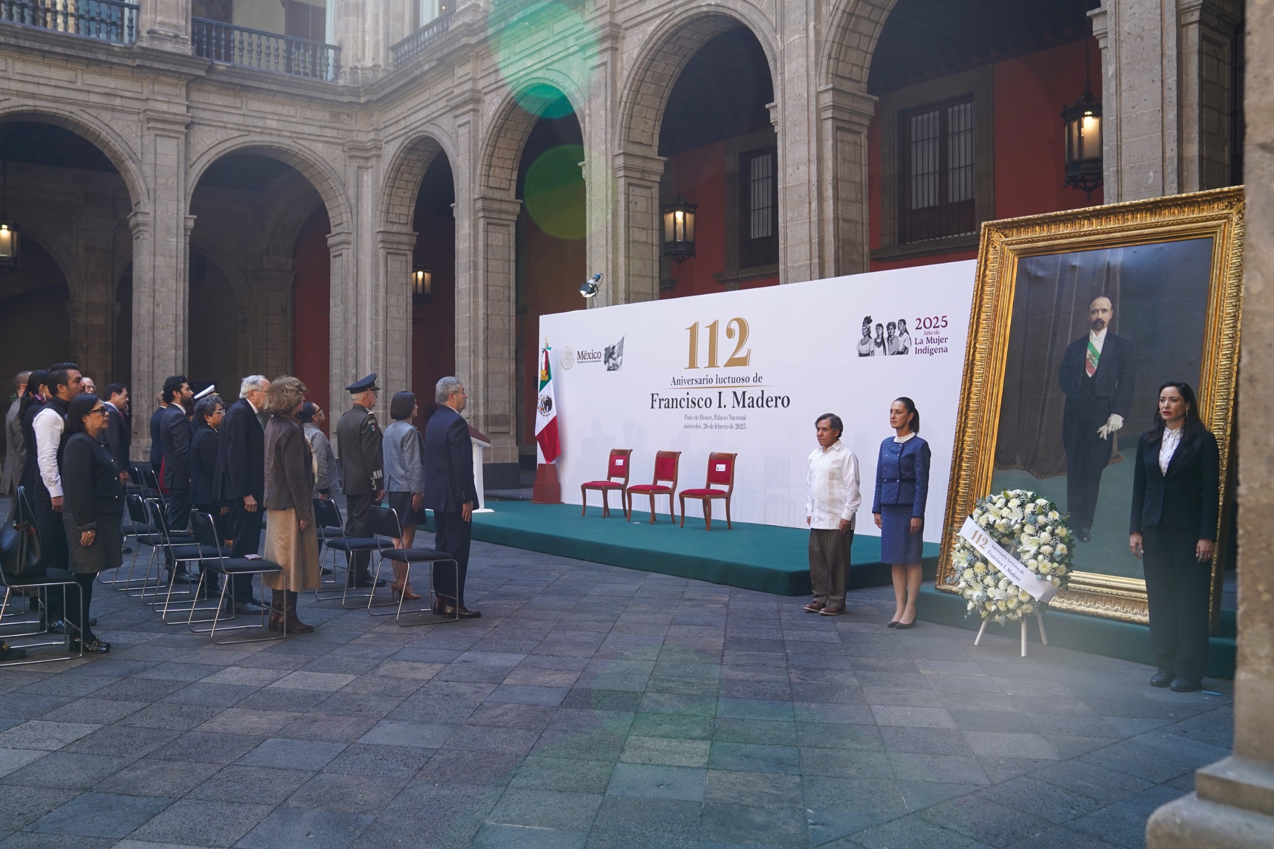 La Presidenta de México, Claudia Sheinbaum Pardo, encabezó la ceremonia por el 112 Aniversario Luctuoso de Francisco I. Madero en el Patio de Honor de Palacio Nacional.