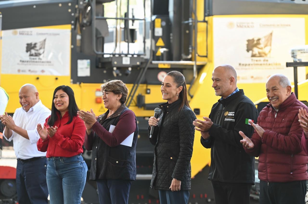 La gobernadora del Estado de México, Delfina Gómez Álvarez, agradeció la tercera entrega de estos trenes de pavimentación, con lo que se cumplió el compromiso establecido por la Presidenta de México en este primer año.