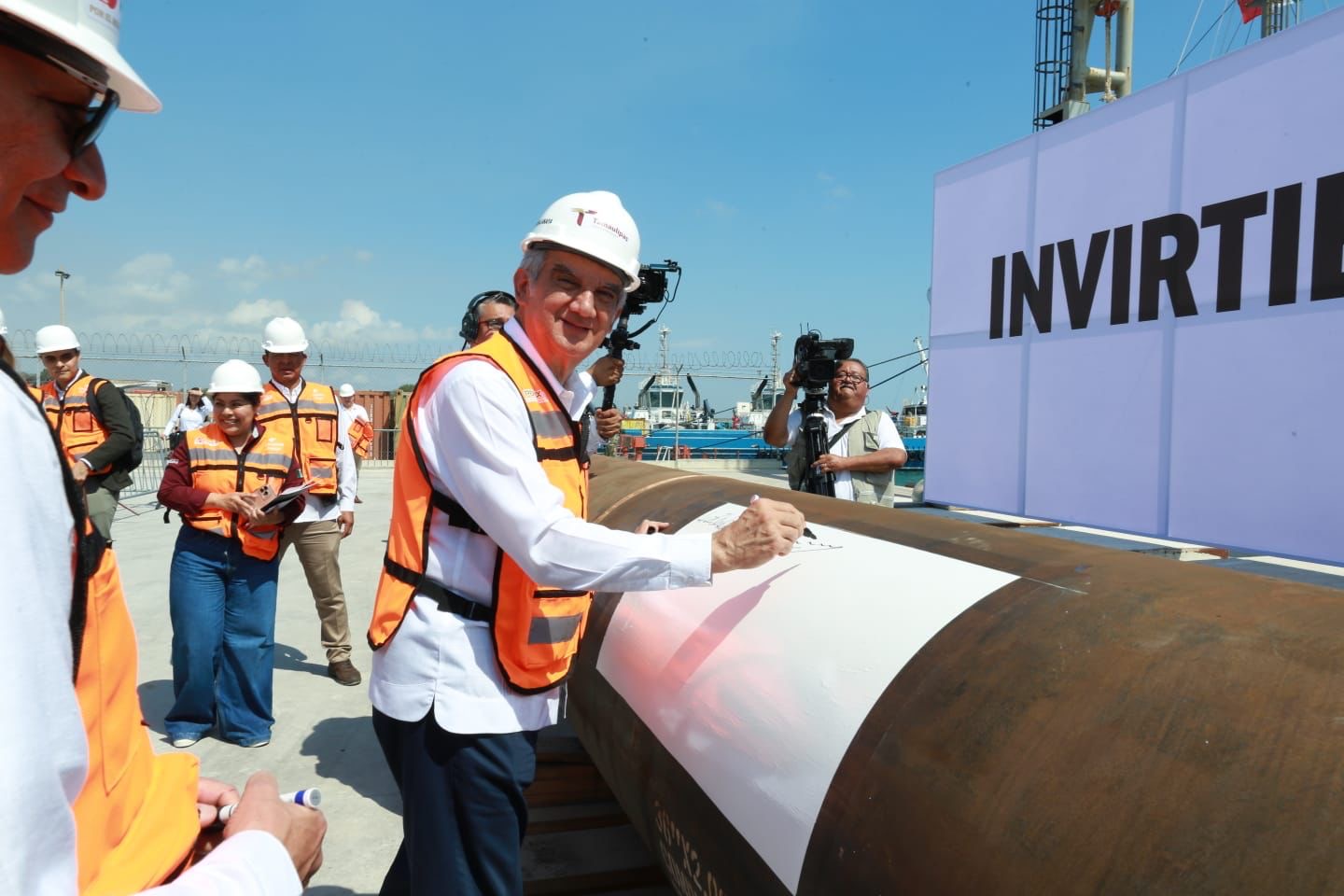 En el acto también estuvieron presentes Octavio Barrera Torres, director de Exploración y Producción de Pemex; Jesús Toledo Guzmán, subsecretario de Asuntos Marítimos y Portuarios; Vidal Llerenas Morales, subsecretario de Industria y Comercio de la Secretaría de Economía; Fidel Maldonado Herrera, titular de la ASIPONA Altamira; Walter Julián Ángel Jiménez, secretario de Desarrollo Energético de Tamaulipas, y Ninfa Cantú Deándar, secretaria de Economía.