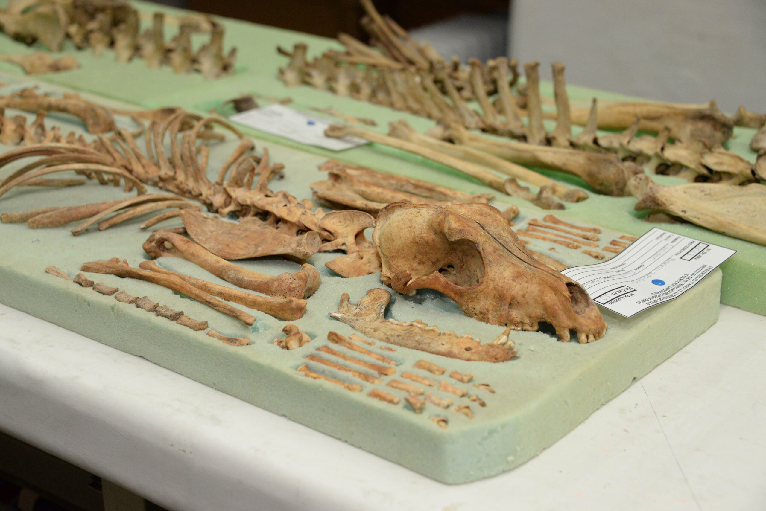 Además de los materiales recientes, la Colección cuenta con especímenes arqueozoológicos de los diferentes proyectos de excavación, los cuales se incorporan al acervo con la autorización del investigador responsable.